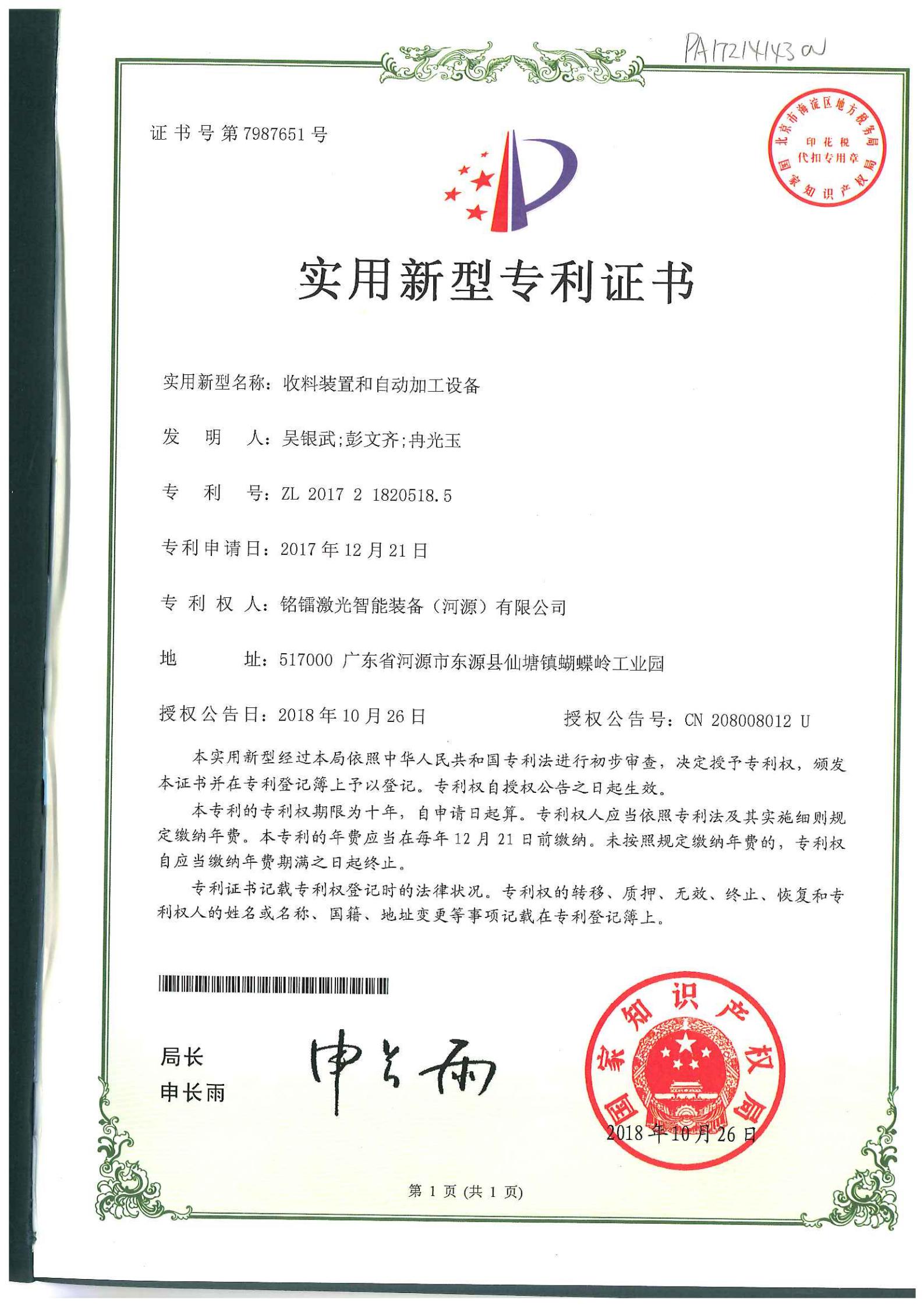 收料装置和自动加工设备